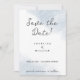 Este simples Save the Date de casamento de praia minimalista apresenta fontes clássicas e modernas em um fundo abstrato de aquarela inspirado no oceano em azul empoeirado e branco. Você pode personalizar facilmente este convite de casamento com tema oceânico com seus próprios detalhes usando este design temático oceânico e paleta de cores costeiras. É versátil e pode ser usado para combinar com muitas ideias e decorações de casamento com tema de praia. Esses convites de casamento de praia minimalistas e elegantes funcionam para casamentos tropicais, bem como casamentos náuticos em climas mais frios. Perfeito para casais que amam o mar (ou pinturas modernas de aquarela artística!).