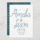Convites de Casamento Azul e Branco Minimalistas - Âncora de Folha de Folha e Stripes de Fundo