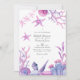 A praia, com temas oceânicos cor-de-rosa e azuis, adiou o anúncio de casamento com chifres-do-mar, algas, corais, conchas e estrelas-do-mar, projetados para serem rápida e facilmente personalizados de acordo com as suas especificidades de eventos. O código QR no verso direciona para o seu local de casamento onde o pessoas pode aprender mais e rsvp.