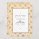 Convite náutico de casamento ouro com padrões de shell e de gavão personalizáveis para suas especificidades de evento.