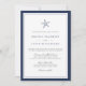 Nossos elegantes convites náuticos de casamento mostram a beleza chic com um olhar limpo e minimalista. Design apresenta uma borda dupla de azul-marinho clássico com uma ilustração azul-estrela marinho no topo. Bloqueio elegante e anotações de script em cinzas suaves e marinho azul correspondente completam a aparência. Perfeito para casamentos de praia, tropicais, insulares ou de destino com uma praia, mas com uma sensação subestimada.