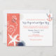 Design moderno e simples de estrelas-do-mar, concha marinha, âncora de veleiro, areia da praia e formas solares em combinação de coral + marinho azul + cores brancas ilustradas em Convites Formais de Casamento. ((Você pode encontrar os essenciais de casamento e favores nesta loja, Bridal Heaven. Entre em contato com ujean4791@gmail.com para obter trabalho personalizado e/ou coordenar papelaria de casamento.)