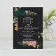 A design apresenta burgundy elegante, verde esmeralda e folhas de ouro de eucalipto sobre fundo preto. Personalize com seus detalhes de casamento e encontre designs correspondentes na minha loja "DreamHut".