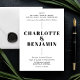 Ponha o tom para seu dia especial com este convite elegante para casamento. Projetado com tipografia ousada e esquema de cores eterno preto e branco, esse convite expele a sofisticação moderna. O layout limpo e os detalhes refinados o tornam ideal para casais que buscam um design minimalista mas com impacto. Perfeito para casamentos contemporâneos que celebram estilo e simplicidade, esse convite deixa uma impressão duradoura para seus convidados.