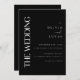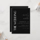 Um convite de casamento negro moderno, com texto moderno ousado, e algumas letras de escrita. Personalize com todas as suas futuras informações de casamento para convidados.
