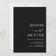 Este elegante convite de casamento apresenta caligrafia moderna e formato clássico e ousado. Com o fundo preto, é chique e fresco. A parte traseira apresenta um código QR no qual você pode vincular seu site de casamento e as instruções do rsvp.