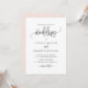 Um convite de casamento elegante, com roteiro de caligrafia e tipografia clássica. Este convite de casamento preto e esmagador é perfeito para qualquer tema de casamento e estação. Personalize adicionando nomes, data, hora, local e outros detalhes. Você pode personalizar ainda mais a parte de trás do convite, alterando o fundo do blush para uma foto ou qualquer outra imagem.