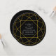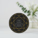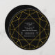 Abstrato geométrico de joia de diamante preto, convite circular circular. Ele exibe contornos de brilho dourado que formam um diamante.