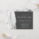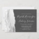 A borda esquerda deste elegante convite de casamento moderno apresenta uma cinza e uma aquarela branca, aparada com falso brilho prateado. O texto personalizável combina manuscrito, copperplate e fontes itálicas em cinzas pálidas em um fundo de cinza de carvão. O verso apresenta uma cinza correspondente, design branco e agata prateada.