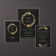 Convites Casamento Negro de Folhagem de Ouro Chic