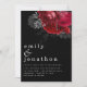 Florestas Vermelhas Prateam Casamento Negro. Um buquê de flores vermelhas com folhagem prateada está no topo à direita e seus primeiros nomes são grandes em na moda-lowercase com os detalhes embaixo. Personalize facilmente o texto.