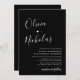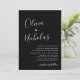 Cartão de Convite para Casamento Preto do Script de Caligrafia Moderna Chic Minimalista. Apresentando um nome monográfico enorme em um estilo elegante, escrito à mão, com letras maiúsculas e minúsculas, escrito em branco sobre fundo preto. Um pouco de emoção entre os primeiros nomes. Personalize o convite com texto personalizado simples e elegante, incluindo os nomes dos casais e todos os detalhes da cerimônia de casamento. Peça agora e faça sua celebração de casamento realmente inesquecível!