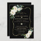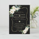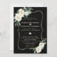 Design de cartão único e elegante, com cor aquosa, flores brancas delicadas do marfim e folhas verdes, uma falso estrutura dourada, divisor floral, sobre fundo preto. Use a ferramenta Personalizar para adicionar suas informações. Para obter itens correspondentes, visite minha Coleção de Flores de Marfim Branca.