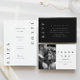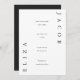 O convite de casamento preto e branco moderno e mínimo apresenta um tipo elegante e grande e um layout simples.