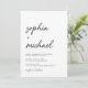 Este convite moderno de casamento apresenta um layout limpo e minimalista com uma letra manuscrita para um toque pessoal. O foco está nos detalhes essenciais - os nomes dos casais, a data do casamento, a localização e o aviso de recepção - apresentados de forma refrescante e simples e na moda. Perfeito para casais que buscam uma estética contemporânea, esse convite atinge o equilíbrio perfeito entre casual e chic.