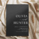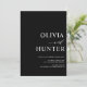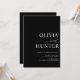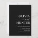 Este elegante convite de casamento apresenta caligrafia moderna e uma típica fonte ousada. Com o fundo preto, é chique e fresco. Os nomes dos casais são ousados, fazer o convite minimalista para o casamento.