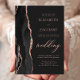 A borda esquerda deste elegante convite de casamento moderno apresenta uma coloração aquosa preta, borda agitada, aparada com falso rosa dourado. O texto personalizável combina fontes serif cor-de-rosa rosa num fundo preto ardente, com a palavra "casamento" em um elegante roteiro cor-de-rosa rosa. O verso apresenta um design de agate preto e rosa dourado correspondente.
