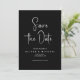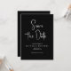 Procurando uma maneira moderna e simples de anunciar seu grande dia? Nosso minimalista "Salve a data" é perfeito para apresentar seus convidados ao dia do seu casamento. Apresentando um script e uma tipografia branca clássica em um fundo preto que pode ser personalizado, o verso também inclui um código QR para os convidados digitalizarem e visitarem seu site para mais detalhes sobre o evento. Esta na moda e design prática certamente vai impressionar e deixar seus entes queridos saberem que você vai se casar.
