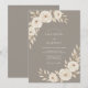 Este design apresenta uma paleta sofisticada de tons quentes bege e creme suave. Rosas delicadas em aquarela e folhagens elegantes criam uma atmosfera serena perfeita para um ambiente rústico ou ao ar livre. As cores neutras suaves oferecem uma estética atemporal e romântica, misturando charme vintage com elegância refinada. Esses elementos botânicos proporcionam uma aparência natural e graciosa.