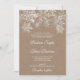 Convite para casamento temático de Natal com flocos de neve brancos em fundo de papel kraft. Perfeito para casamentos no inverno elegantes e outros eventos sazonais e feriados.