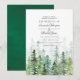 Cartão de convite à casamento no inverno da floresta aquosa com coníferas e tipografia de na moda.