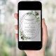 Para um casamento no inverno. Um fundo com aspecto fino de prata decorado com cones, bagas brancas e verde. Um falso quadro prateado. Personalize e adicione seus nomes e detalhes.