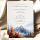 Convide seus convidados para um casamento com uma vista que vai tirar o fôlego com nosso Convite de Casamento. Este belamente feito convite mostra uma aquarela vista de montanhas majestosas e um lago pacífico, cercado por um incêndio florestal com cores autóctones. A paleta é uma mistura harmoniosa de laranjas e vermelhos, azuis tranquilos e verdes ricos, encapsulando a essência de uma temporada de outono nas terras altas. A tipografia elegante e moderna nas cinzas de ardósia complementa os tons quentes e legal, fornecendo um anúncio perfeito para o seu casamento na montanha russa. A reflexão serena sobre a água adiciona uma qualidade sonhadora à sua prévia do dia".