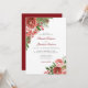 Um convite elegante para o seu casamento de inverno ou de Natal, com um arranjo de florais de cor vermelha e acentos de verde de inverno. Personalize com todos os detalhes importantes, como nomes de noiva e noiva, data do casamento, hora e local. O reverso é coordenado em vermelho.