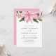 Convite de casamento para o tema floral de inverno. Este convite personalizável apresenta poinsettia rosa-d'água e hollies. Personalize adicionando nomes, data, hora e local. Este convite floral cor-de-rosa é perfeito para casamentos de Natal, inverno e feriados.