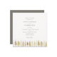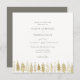 Uma fileira de árvores de Natal douradas desenhadas à mão enfeita este moderno, sofisticado, elegante e chic inverno ou modelo de convite para o casamento de Natal. Adorável para casais que celebrarão suas núpcias nos meses de inverno ou perto do Natal.