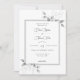 Eucalipto e mirtilos, desenhados à mão em lápis clássico de grafite e em camadas, alguns em ouro branco (digitalmente), fazem um modelo de convite para casamentos no inverno moderno, sofisticado, elegante e chic, que é uma tomada moderna em um tradicional quadro de casamento floral. A textura do lápis preto aparece no papel branco, dando-lhe uma sensação de elegância sem esforço. O quadro é também uma versão atualizada de um clássico, dando à estrutura design, mas mantendo uma noção de frescura moderna. Ele apresenta um roteiro de caligrafia moderno para os nomes da noiva e do noivo.