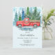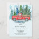 Adicione um encanto confortável ao seu casamento no inverno com este design de cor da água rústica apresentando um clássico caminhão de safra vermelha adornada com terras e luzes festivas. O caminhão carregar pinheiros cobertos por neve e se coloca contra um pano de fundo sereno de floresta com delicados flocos de neve azuis a derivar de cima. Perfeito para convites de casamento no inverno, salve as datas, a sinalização ou as placas de obrigado. Esta design romântica e nostálgica captura a magia de uma celebração de neve cheia de amor e elegância rústica. Hubby e wifey para combinar!