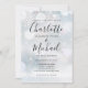 Apresentando nomes de estilo de assinatura, esta elegante cinza e o convite de casamento branco podem ser personalizados com suas informações em letras de chico sobre um fundo de geada de inverno. Projetado por Thisnotme©
