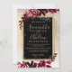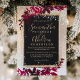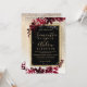 Uma tipografia de ouro moderna, chica e elegante Marca-d-água borrifada vermelho floral convite de festas de Natal com folha de cor vermelha pintada manualmente num gradiente de ouro amarelo-chico com neve branca e flocos de neve.