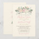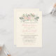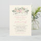 Este convite de casamento elegante apresenta um script cor-de-rosa suave com um brasão floral botânico romântico em tons de rosa e verde-salvia. O design é definido em um fundo branco quente e limpo para um visual clássico de jardim. Perfeito para celebrações de primavera e verão, desde cerimônias ao ar livre até casamentos tradicionais em igrejas. Personalize com seus nomes, data e detalhes.