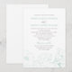 Um convite de casamento fresco com ilustrações delicadas de hibisco verde-menta ao longo da borda inferior, com tipografia verde correspondente em um fundo branco limpo. O design floral tropical combinado com a caligrafia fluida cria uma elegância arejada e inspirada em jardins. Toda a redação é totalmente personalizável para sua celebração.