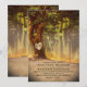 Convites de casamento elegantes e vintage com um lago romântico em um cenário florestal, uma velha árvore rústica com um coração esculpido e suas iniciais dentro, e um modelo de casamento personalizável.