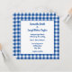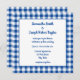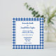 Crie seus próprios convites personalizados para casamento com padrões de xadrez de gingham azul e branco. Crie um design personalizado para corresponder à sua paleta de casamento alterando a cor de fundo azul. Você também pode experimentar um estilo diferente de letra da caligrafia moderna para corresponder ao estilo pessoal da noiva e do noivo. A borda azul e a cor branca da camada quadrada do texto do convite podem ser personalizadas.