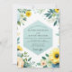 Adote uma atmosfera fresca e arejada com este lindo design botânico pintado. Botões de ouro amarelo canário e delicadas flores brancas são artisticamente arranjados com folhagens em turquesa empoeirada e verde sage. A estética suave aquarela cria um sentimento romântico e caprichoso, perfeito para uma união alegre de primavera ou verão.