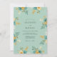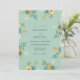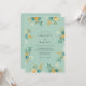 Este design apresenta um fundo turquesa suave adornado com uma vibrante variedade de elementos florais amarelos dourados e azuis aqua. Flores delicadas e acentos folhosos criam um efeito de prado caprichoso, perfeito para uma celebração romântica. O estilo artístico de aquarela evoca uma atmosfera serena e natural.