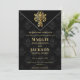 O convite para casamentos de chic Elegante e na moda à noite foi feito em um fundo preto padronizado com um emblema de ouro.