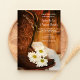 Convide convidados para os vossos futuros núpcias de fazendas rurais com a rusticidade das maricas White Daisies e Cowboy Boots Country Western Wedding Invitation. Este encantador casamento personalizado de um rancho apresenta uma fotografia floral de botas de cowboy de couro castanho, flores de margarida branca, véu branco-brasil e um fundo de madeira castanho-curado.