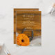 Convide convidados para os vossos futuros núpcias de temas rurais, informais mas elegantes, com o encantador Convite para Casamento Ocidental de Orange Daisy e Horserrade Country. Este casamento temático casual e clássico, personalizado, dos equídeos ocidentais apresenta uma fotografia floral tênue de um florescimento de flores de gérber laranja, ferradura empoeirada e um véu branco de noiva com um fundo de madeira marrom rústica e curada. Inpo perfeito ou ideia para noiva de vaqueira e noivo de vaqueiro planejando uma cerimônia de casamento de festas de fazenda relaxada. Disponível como um convite impresso para envio por correio ou como um download digital para fácil compartilhamento digital online.
