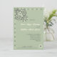 Este simples sábio convite de casamento, inspirado na banda ocidental moderna, tem muito estilo e floresce, mas tem um sentimento minimalista. Todos os sotaques gráficos são elementos tradicionais de bandana apresentados de uma nova forma. Clássico, mas moderno. A tipografia também combina simplicidade com detalhes elegantes. Seus nomes são apresentados em um roteiro de caligrafia moderno como ponto focal. Perfeito para um casamento moderno ocidental ou country ou para locais de rancho, fazenda ou celeiro. Toque russo mas chic. Envie um convite verde de cor branca quente e preta e texto e sotaques de cinza. As cores podem ser personalizadas na Ferramenta Design. Todo texto é editável.