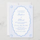 Marque velejas para um casamento litorâneo sonhador com este elegante convite inspirado náutico! Apresentando pinlistras brancas e azuis, delicadas bordas escaldadas, e detalhes charmosos das celas de foca, esta design é perfeita para uma celebração à beira-mar. Ideal para Nantucket, Cape Cod, Hamptons, Charleston, ou qualquer casamento na frente do oceano, este convite exumenta a elegância marítima eterno. Personalize com seus nomes e detalhes de casamento para um toque refinado.