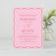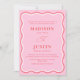 Apresentando o Convite de Casamento Vazio das Curvas Retro-Rosa e Vermelho Curvas Rosa, onde curvas de rabanete divertidas em negrito, cores contrastantes atendem à caligrafia elegante para criar um prazer visual. Essa papelaria moderna e contemporânea expele um charme suave, divertido e caprichoso, perfeito para casais que procuram se afastar do tradicional. Trendy e wavy, este convite promete fazer uma declaração memorável, estabelecendo o tom para uma celebração de casamento única e inesquecível.
