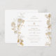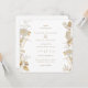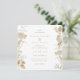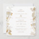 Folhagem floral e botânica dourada, convite de casamento em cor branca de fundo e texto bege coordenado. Elegante design monocromático em ouro falso e bege.