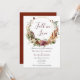 Este é um convite de casamento chamado "Fall in Love" no outono usando uma bela e rústica folhagem de aquarela e coroa floral em tons de ferrugem, ouro, terracota, burgundy, verduras profundas e laranjas queimadas. Isso seria perfeito para qualquer um que planejasse um casamento outono boêmico. Personalize facilmente todo o texto conforme necessário usando o modelo de texto fornecido. Entre em contato com o designer para obter informações sobre este design ou se você precisar de algum produto de coordenação.