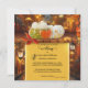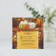Um convite de casamento colorido no outono com duas abóboras com folhas de outono em uma cena de fantasia de boia. Lanternas festivas aumentam a alegria. No verso há um código QR opcional com informações de RSVP. (você pode excluir facilmente se não precisar). Também o ornamento estilizado de ouro no verso é opcional.