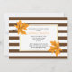 Folhas de bordo laranja e chá de panela de casamento de padrão listrado branco e castanho. Um casamento outono contemporâneo convida as folhas de maple laranja com veias marrons, um quadro branco com contorno de ouro com seu texto e uma borda de padrão listrada.
